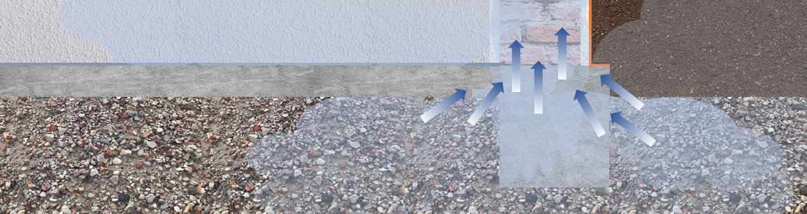 Moisture rising from the ground is a major problem for many buildings and is often difficult to solve. Conventional methods such as digging up and laying drainage are often only possible to a limited extent because most external walls in inner-city areas cannot be accessed. The reasons for rising soil moisture are the horizontal barriers that are often missing or have become increasingly permeable over the years. An estimated 90% of all cases are affected by this and have so far only been able to be professionally remedied with a great deal of financial effort and intervention in the building structure.